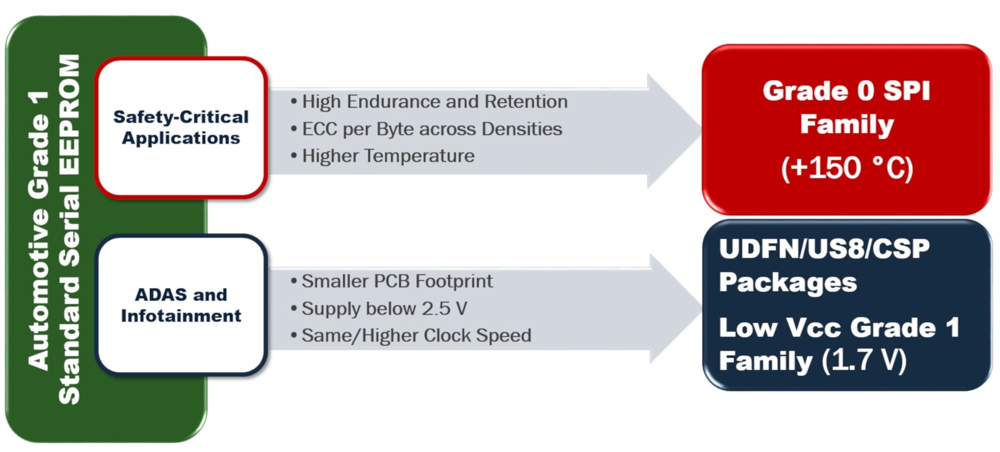 More of the features we rely on in our cars are now considered safety-critical, which means they must meet even more demanding requirements. In this class of application, Flash memory is not acceptable, with the availability of Grade 1 and true Grade 0 EEPROM, automotive OEMs have access to the type of non-volatile memory they need to enable next-generation features.