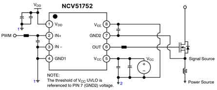 图 3:能够产生负偏压的 NCV51752 栅极驱动器的典型示例原理图