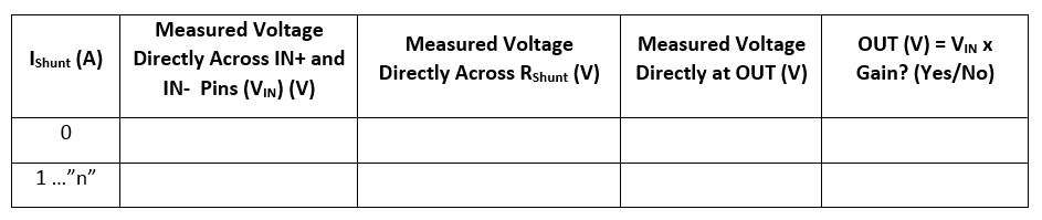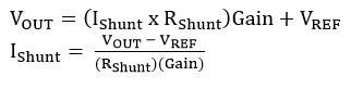 - The amplifier output should be the measured voltage directly across the inputs (VShunt) multiplied by the amplifier gain.