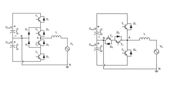 For applications like uninterruptible power supply (UPS) and solar inverters, new topologies with multi-voltage levels have been designed to overcome these limitations. The most common structures are the unipolar switching I−Type and T−Type converters which can operate off higher bus voltages. In addition, more output states reduce voltages across the filter, meaning smaller components can be used. These topologies are suitable for higher frequencies (16kHz ~ 40kHz) and offer excellent efficiency (~98%) due to lower switching losses.