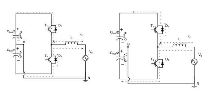 Figure 5: Half-Bridge topology showing positive and negative output current flow