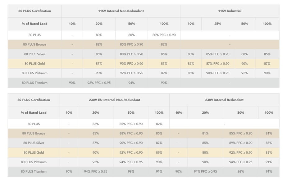 80 PLUS® program Efficiency Level Certification