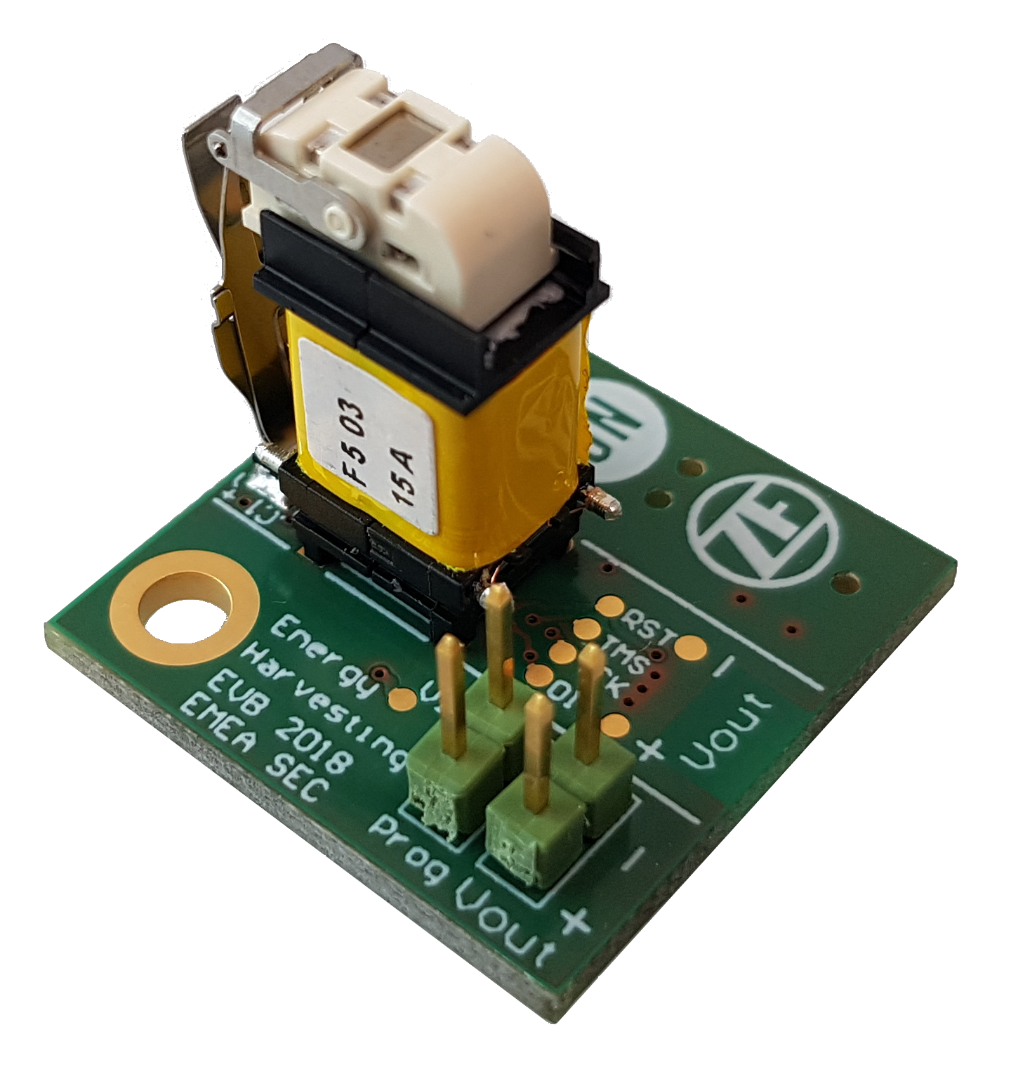 The RSL10 has the industry’s lowest power consumption of any Bluetooth® 5 radio, drawing just 5.6 mA receive power (7 mW at 1.25 V) and a maximum of 8.9 mA transmit power. As the frame protocol can now be as short as 10 mS, the total energy budget required to send a frame can be less than 100 µJoule. The ZF energy harvesting switch used in the reference design is capable of generating 300 µJoule which provides ample power to collect, process and send data each time the switch is pressed.