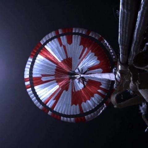 Figure 1. Image acquired during Perseverance’s descent to Mars, using its Parachute Up-Look Camera A.