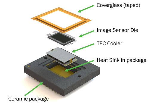 In addition, we are expanding availability of packages that incorporate an integrated thermoelectric cooler throughout our full IT-EMCCD portfolio, with all five devices now available in an optional cooled configuration. With the extreme sensitivity available from this technology, cooling is important to reduce spurious background signals – and integrating a cooler directly into the product’s package simplifies with work needed by camera manufacturers to develop a cooled camera design.