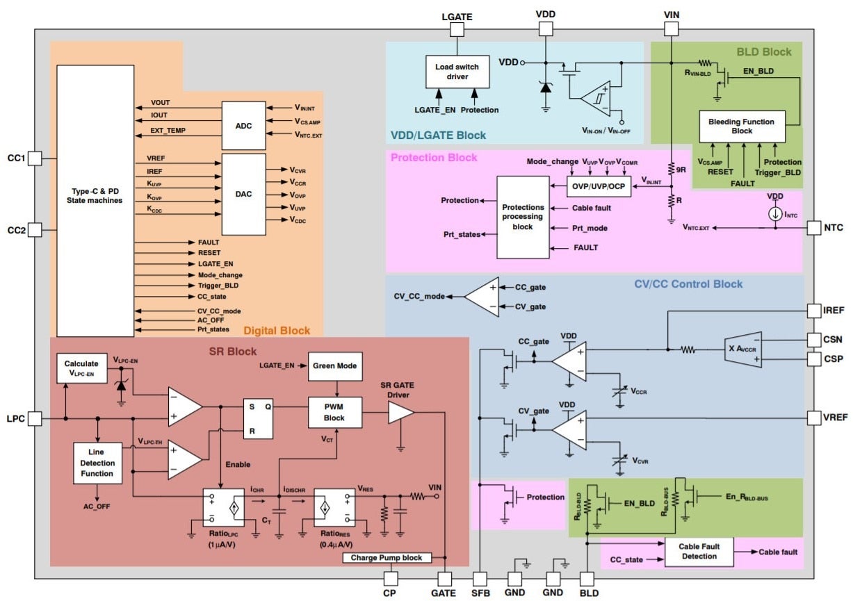 The PPS Constant Current / Constant Voltage (CC/CV) requirements were meticulously addressed through an internal, high-resolution 10-bit DAC that is fully compliant with the USB-C™ PD 3.0 requirements. Additionally, the FAN6390 provides N-FET drivers, temperature monitoring and VCONN LDOs to further simplify system requirements and minimize overall BOM cost.