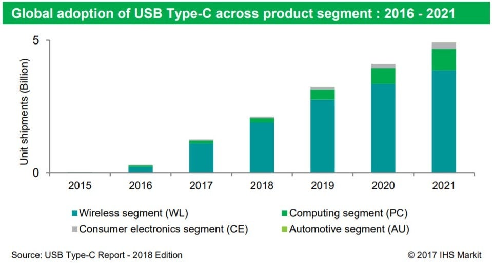 USB-C is becoming a household term with regard to electronics and charging. For years, most homes have a variety of charging cables floating around and it seems someone is always misplacing “the one they need”. According to IHS Markit data, the penetration of the USB-C™ connector is expected to have a compound annual growth rate (CAGR) of 74.1% from 2016-2021.