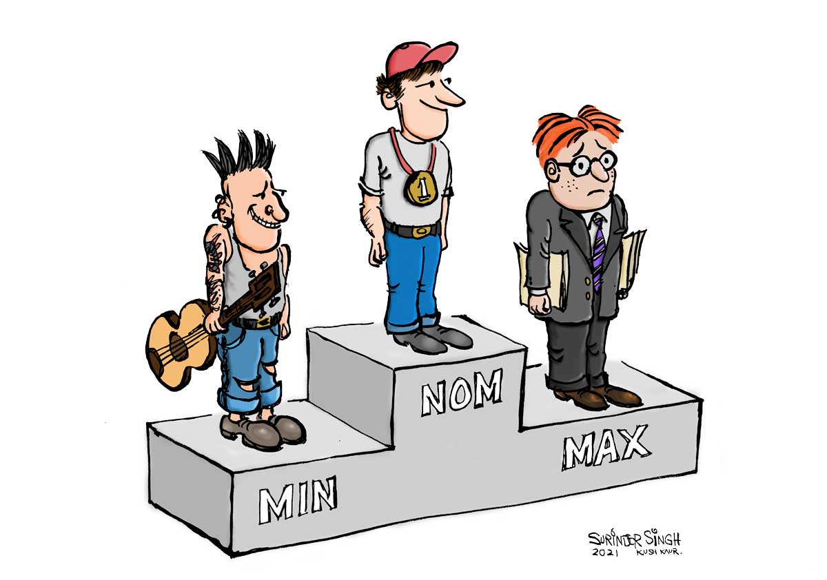 Figure 1: "Sometimes it is better to be normal". Caricature drawn by Surinder P. Singh and graphics artwork by Kush Kaur.