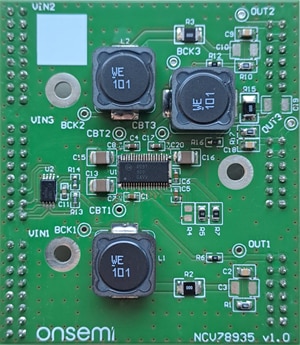 Combined with NCV78964R1DAGEVB Daughter Board, it provides 5 Buck channels on LEDGEN4PEVK Gen 4+ LED Driver Evaluation Kit.