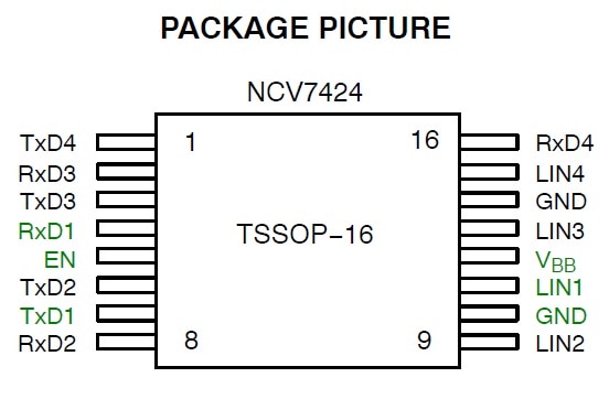 NCV7424 Quad LIN Transceiver Evaluation Board